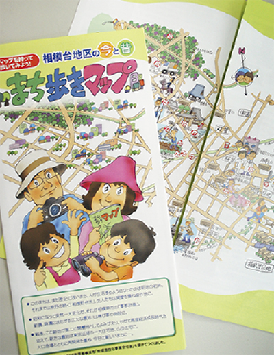 毎年こどもの日を前に相模川で開催される「泳げこいのぼり相模川」。この市内に掲示するポスターのイラストは、毎年市村さんが担当していた。2013年に開業した小田急相模原駅前の商業施設「ペアナードオダサガ」では施設のロゴを制作。また今年1月に発行された相模台地区の今と昔をまとめた「まち歩きMAP」では、随所に市村さんのイラストが散りばめられ、地域と歴史を一目で楽しむことができる一冊となっている。