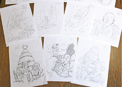 市村さんは1934年、長野県須坂市の生まれ。高校卒業を機に上京し、多摩美術大学油絵科へ進学。日活撮影所美術部に入社したのち、縁あって漫画の世界へ。相模台に住み始めたのは1970年頃。制作活動の傍ら、PTAや自治会など地域活動にも尽力していた。近年では、小田急相模原駅前の商業施設の開業時にそのロゴマークを制作、今年1月に発行された地元相模台地区の散策マップではイラストを担当。様々な制作物を依頼されては務めあげ、年を重ねなお活躍の幅を広げてきた。