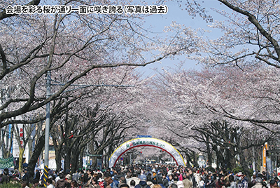 「72万人のふるさとづくり」などのコンセプトのもと、1974年に始まり、今年で43回目を迎える市民桜まつり。当日は、華々しい開会式とパレード(2日)で幕開け。テープカットに続き鼓笛隊らが通りを練り歩いた後、県警音楽隊らの演奏が行われる。