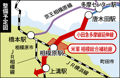 14年には延伸する上での課題となっていた相模総合補給廠の一部が国へ返還され、鉄道用地を確保できたことも追い風となった。こうした流れを受け、関係者、住民間で実現に向けた期待が一層高まる中、2000年の「検討すべき路線」という不確実な位置付けから、条件が整えば整備への具体的な取り組みの実施へと移行できる「意義ある事業」という位置付けに変わったことは、延伸に向け大きな一歩との見方ができる。