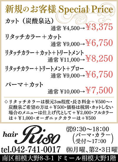 ”hair Riso” 相模大野に今日オープン