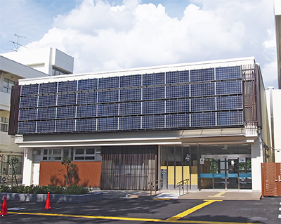 新たな施設は延べ床面積2210・42平方メートル。まちづくりセンター、公民館のほか、高齢者の相談窓口として高齢者支援センターも併設。正面の壁面を覆う太陽光発電が特徴的で、災害時の活用を見越して非常用発電設備、緊急遮断弁付受水槽も設置されている。