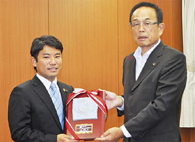 加山市長は「活躍が市民の元気になります」と労いの言葉をかけ、田畑選手も「チームの2人のおかげで優勝できた。東京五輪を目指し頑張りたい」と答えた。