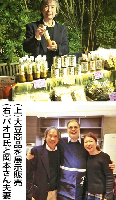 日本とイタリアのこだわり食材と作り手が集うイベント「ミニミニゴロザリア」が11月16日、渋谷区代官山のレストランで開催され、豊国屋(南区新戸)の岡本政弘さん・加代子さん夫妻が参加。自店で取り扱っている津久井在来大豆と関連商品をPRした。