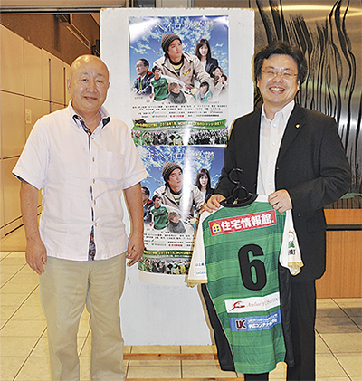 映画は市内在住の作家・井上尚登さんの同名小説が原作。相模原のJ3サッカーチームに所属するホペイロ(用具係)を描いた内容は、ミステリアスながらもユーモア溢れるストーリー。今年2月から3月にかけ市内各所で撮影された。6月には都内で初号試写を実施。配給会社が決まったことから制作サイドは上映時期の検討を加速させ、MOVIX橋本での先行ロードショーで交渉がまとまったことにより、市内試写会での発表にこぎつけた。新春公開の第2弾として角川シネマ新宿での上映も決定。その後、全国で順次公開される見通し。