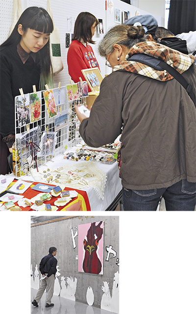 各学科の学生による展示や物販、フリーマーケット、模擬店のほか、ダンスや楽器演奏など多彩なステージが連日繰り広げられた。土日は雨の中での開催となったが、ゲストのツモリチサトさん、小越勇輝さんの講演会も盛況だった。