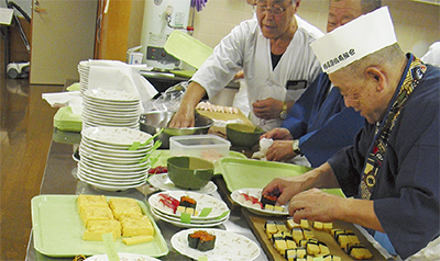 相模原市内のすし店が加入する任意団体「相模原鮨商組合」(紅林秋男会長)の組合員10人が9日、南区麻溝台にある神奈川県立さがみ緑風園を訪れ、握りずしの出張サービスを行った。