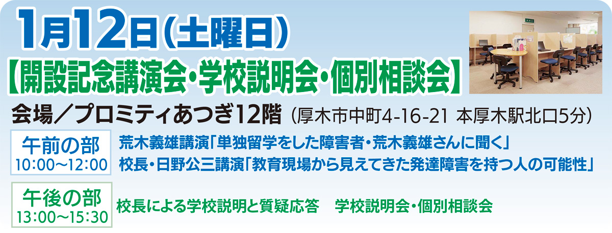 この春、本厚木駅南口に開設される「湘南厚木SNEC」の校長を務めるのは、自閉症天才作家の異名をとる東田直樹さんらを見出した日野公三さん(『発達障害の子どもたちの進路と多様な可能性』ほか著書多数)。「高校進学の選択肢に不満や不安を感じている中学生、今いる高校の教育環境に悩んでいる高校生、そしてご家族の方はぜひ一度SNECの扉をたたいてほしい」と話しています。