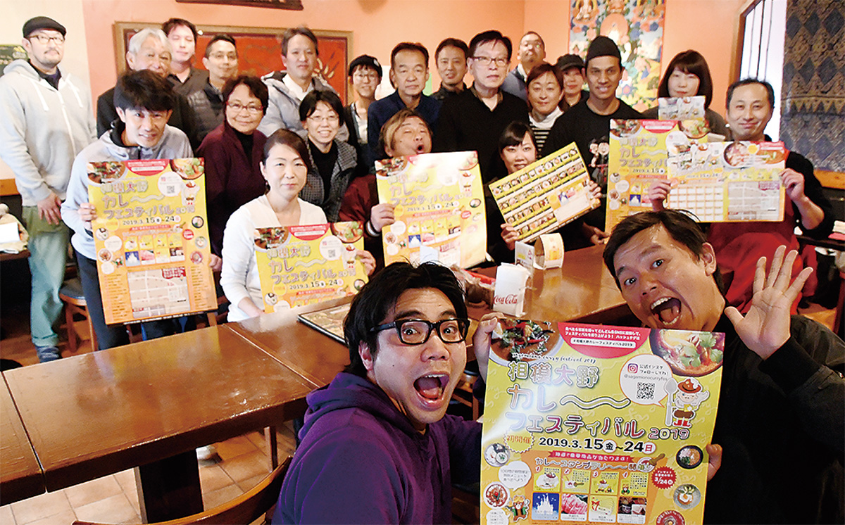 さらに地元出身のお笑いコンビ「昨日のカレーを温めて」も参加が決定した。県立麻溝台高校で同級生だった山下修さんと川口泰央さんが各店を練り歩き、「お好み焼まるう」「うどん処らんまん」「焼肉八起」「波の香り」の4店舗ではゲリラライブを敢行予定。期間中は、2人が4月2日(火)に相模女子大学グリーンホールで主催するお笑いライブの無料チケットを全店舗で設置する。山下さんが「相模原市を盛り上げ、カレーで街を元気にしたい」と話せば、川口さんは「全店舗のカレーを制覇します」と意気込む。