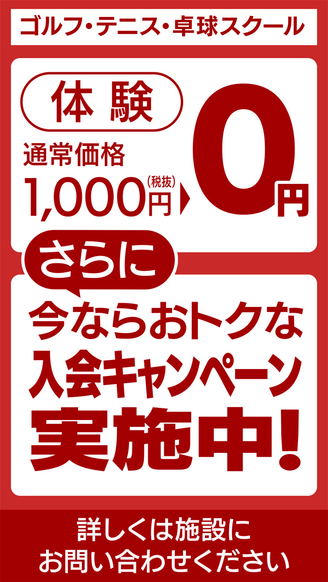 「大人の習い事を始めたい」など、この秋に運動を始めたい人は、同施設のゴルフ、テニス、卓球スクールがお勧め。