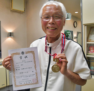 上鶴間在住の市民ランナー、阿部一二三(ひふみ)さん(80)が、7月に大和スポーツセンター競技場で開催された「第36回神奈川マスターズ陸上競技大会」男女3000mの80歳以上の部門で優勝した。