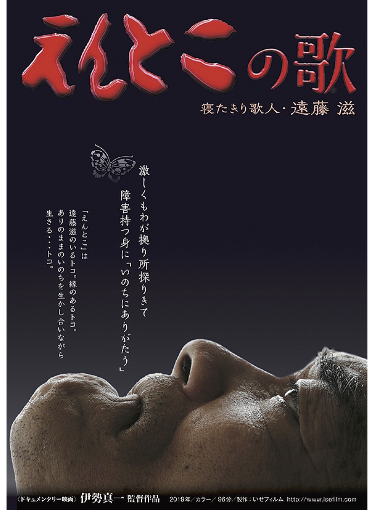 2016年、相模原市の知的障害者福祉施設「津久井やまゆり園」で起きた、入所者ら45人が殺傷された事件。今年1月から裁判が始まり、3月に死刑が求刑され結審した。同事件をきっかけに撮影されたドキュメンタリー映画「えんとこの歌 寝たきり歌人・遠藤滋」の上映会が7月26日(日)に相模女子大学グリーンホールで開催される。ドキュメンタリー映画を上映する会・相模原、いせフィルムの共催。当初は3月に予定されていたが、コロナウイルス感染症拡大の影響で延期されていた。