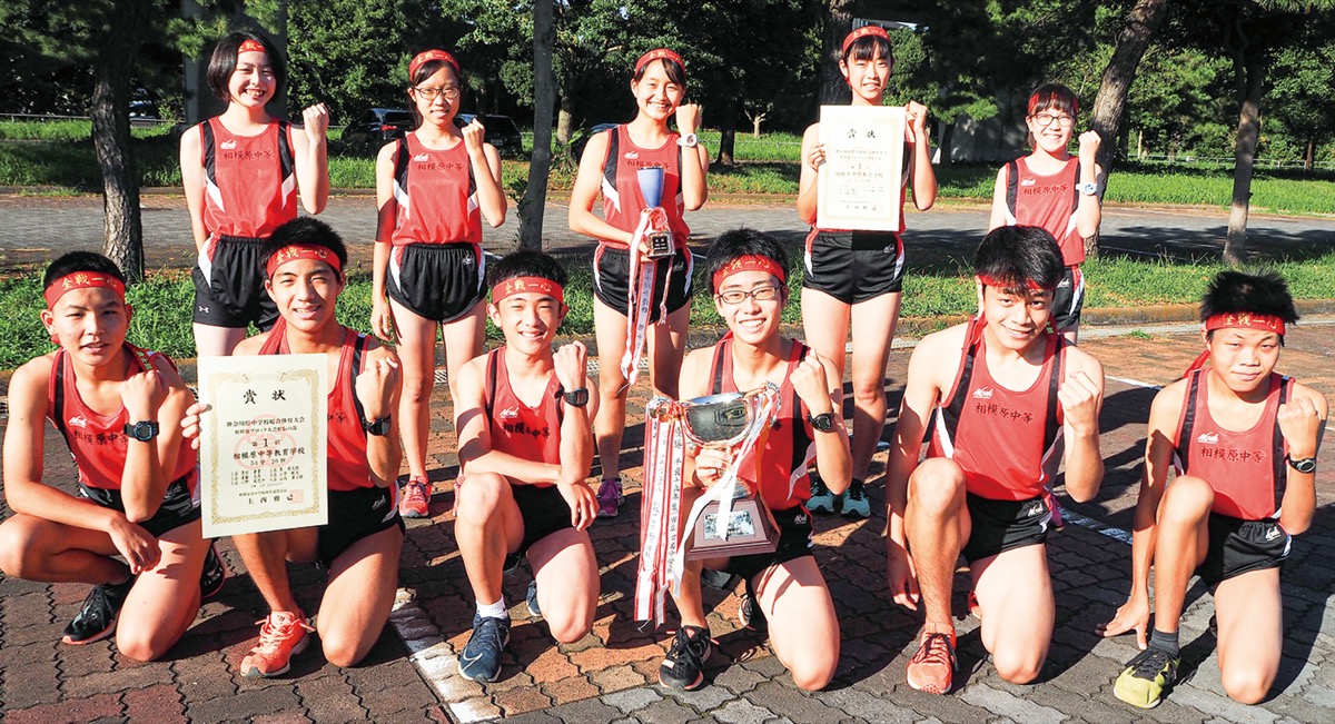 相模原市中学校駅伝大会が10月17日、相模原ギオンスタジアム周辺コースで行われ、相模原中等教育学校(相模大野)陸上競技部=写真=が男女アベック優勝を果たした。陸上競技部の佐良土雪野顧問によると、アベック優勝は同校で初めてだという。