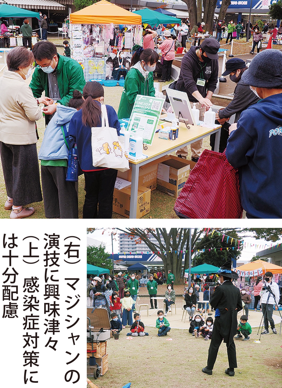 当日はマジシャンやバルーンアーティスト、様々な楽器の演奏家がパフォーマンスを披露。雑貨やアクセサリー、軽食の販売も行われた。一番留意したのは感染症対策。入口と出口を1カ所ずつに指定し、検温、消毒に加え、連絡先の記帳も実施した。佐竹さんは「活気づくりは大切。今回のイベントを学びにして、来年以降に繋げていきたい」と話している。