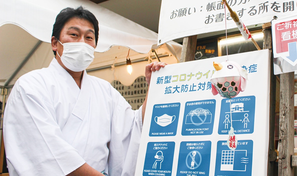 市内神社がコロナ対策の指針とするのが、埼玉県神社庁が提唱する「変わらない祈りのために」キャンペーンだ。神奈川県神社庁が賛同の意を示し、ガイドラインとして加盟神社に提唱しているもので、中には、対策として参拝客の境内での滞在時間を減らすため、一方通行路を作り動線をスムーズにすることや、休憩所の撤廃などが事例として挙げられている。加えて、例年多くの初詣客が手にする鈴尾は一時的に使用できないようにすることを奨励し、複数の賽銭箱を用意することで、1カ所に集中しないようにする事例などがガイドラインには記載されている。