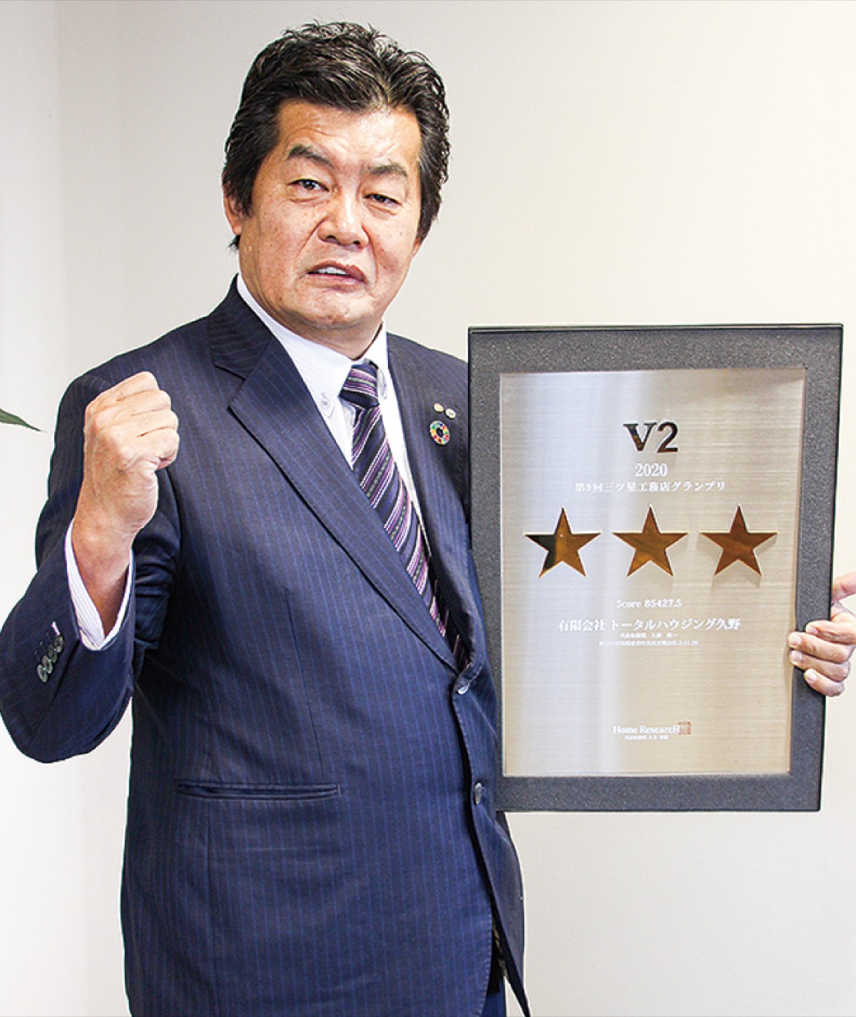 第三者住宅検査機関のホームリサーチが主催する第9回全国工務店グランプリでこのほど、中央区水郷田名の工務店「トータルハウジング久野」(久野新一社長)が、全国1539社のうち上位3社に授与される「金の楯」を受賞した。