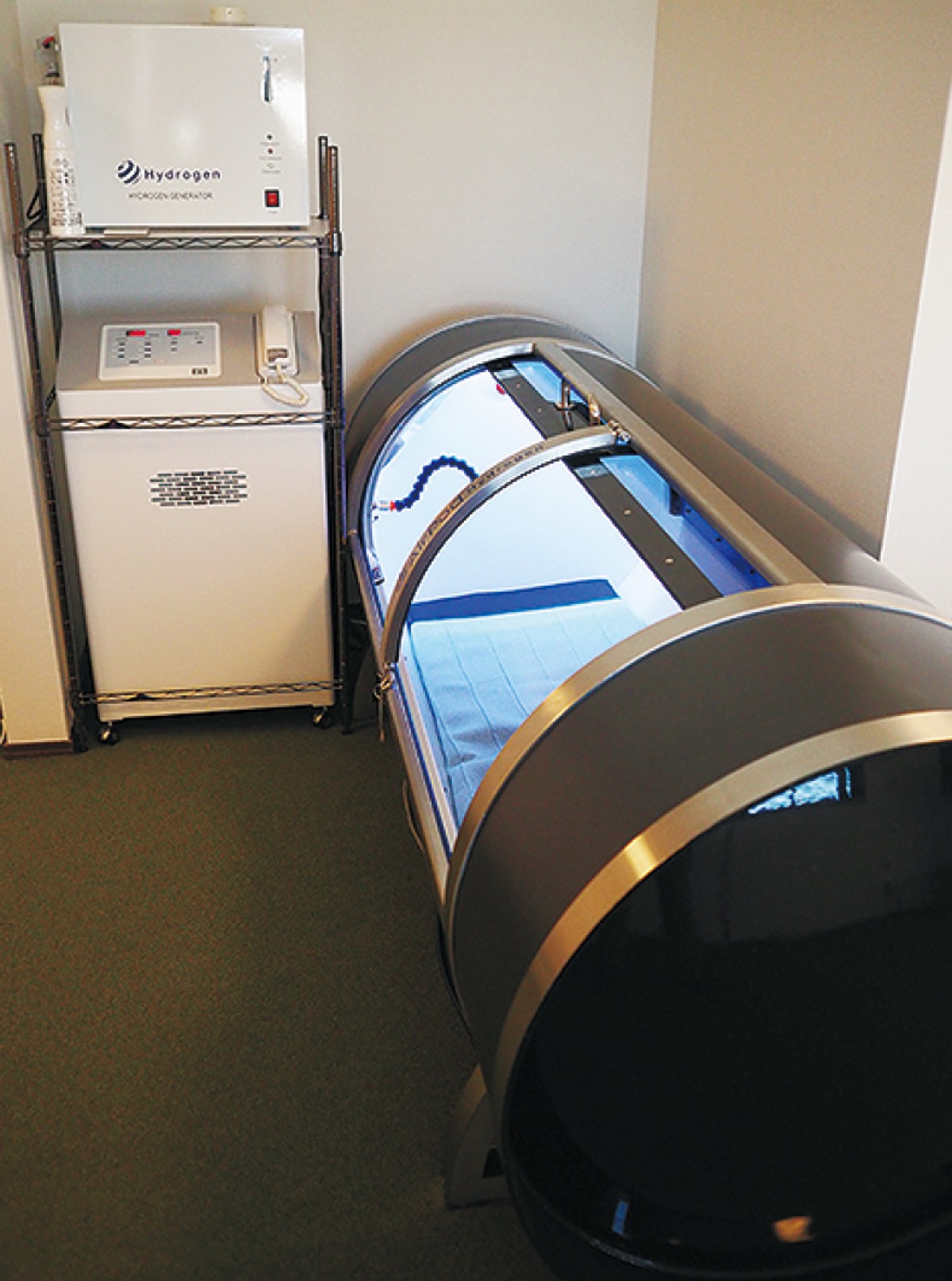 社員の健康管理にも力を注ぎ、本社2階にラウンジ「折カフェ」を開設。社員なら誰でも利用できる水素カプセル2台を導入した。コロナ禍の現在は、「地域貢献の一環になれば」と、近隣住民への開放も実施している(有料・予約制)。同社の折本隆広社長は「地域に支えられて40年。水回り全般の修理・リフォームも承ります」と話している。