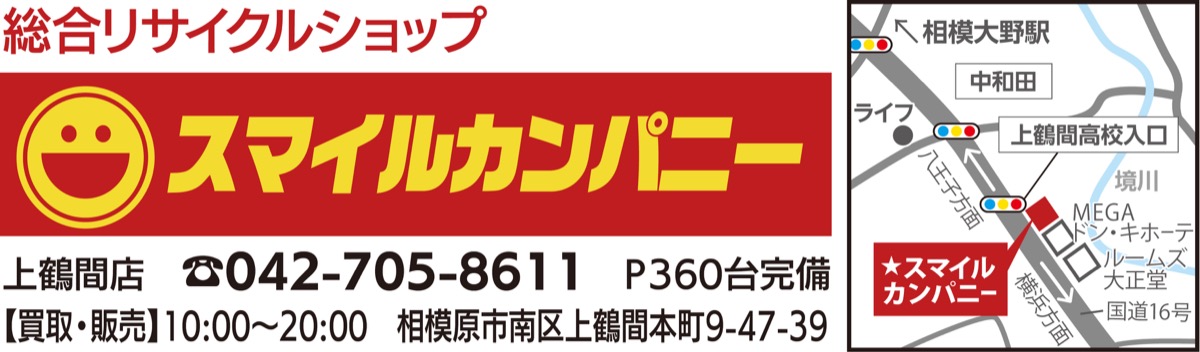高級ブランド品からブランド食器、家具ではソファー・ダイニング・ベッド、生活家電やデジタル家電などあらゆる生活用品を取り扱う総合リサイクルショップ「スマイルカンパニー上鶴間店」では、12月11日(土)から25日(土)までの15日間、クリスマスセールを開催する。期間中は、店内にあるガラスケース内の商品が10%オフに(金券を除く)。また、同時開催の特別企画として、3万円以上のルイ・ヴィトン製品購入で箱を、5万円以上購入で保存袋をプレゼント。地域屈指の品揃えが人気の同店なら探していたアイテムがきっと見つかるはず。どれも1点ものなのでお早めに。