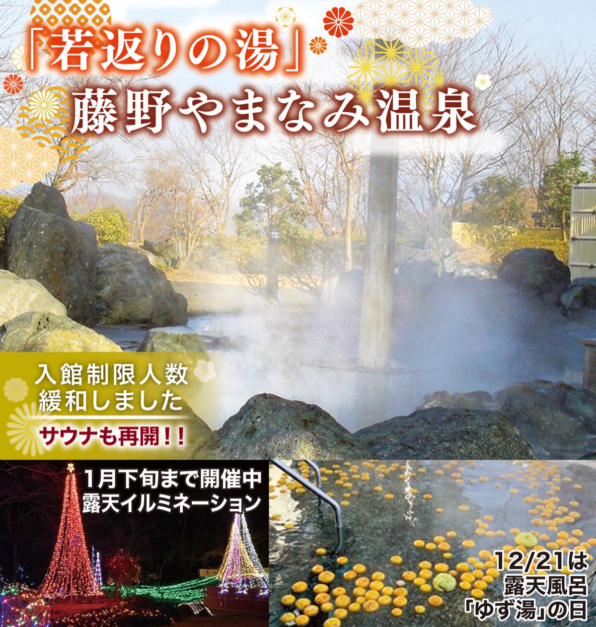 雄大な自然に囲まれた「藤野やまなみ温泉」は陣馬山や相模湖からもほど近く、自然情緒たっぷりな日帰り温泉施設。のどかな里山風景を求めて都心から足を運ぶ人も多い。一切加水せず、成分豊富な源泉100%かけ流しの温泉は、㏗9・0のアルカリ性でしっとりなめらか。美肌効果も抜群で「若返りの湯」とも言われている。開放感あふれる露天風呂に浸かれば、日々の喧騒からも解き放たれそう。
