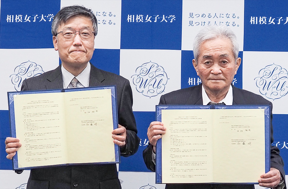 地域の活性化や地域人材の育成に寄与することを目的に、公益社団法人相模原市観光協会(加藤明代表理事)と相模女子大学・相模女子大学短期大学部(田畑雅英学長)の間で、12月6日に包括連携協定が締結された。