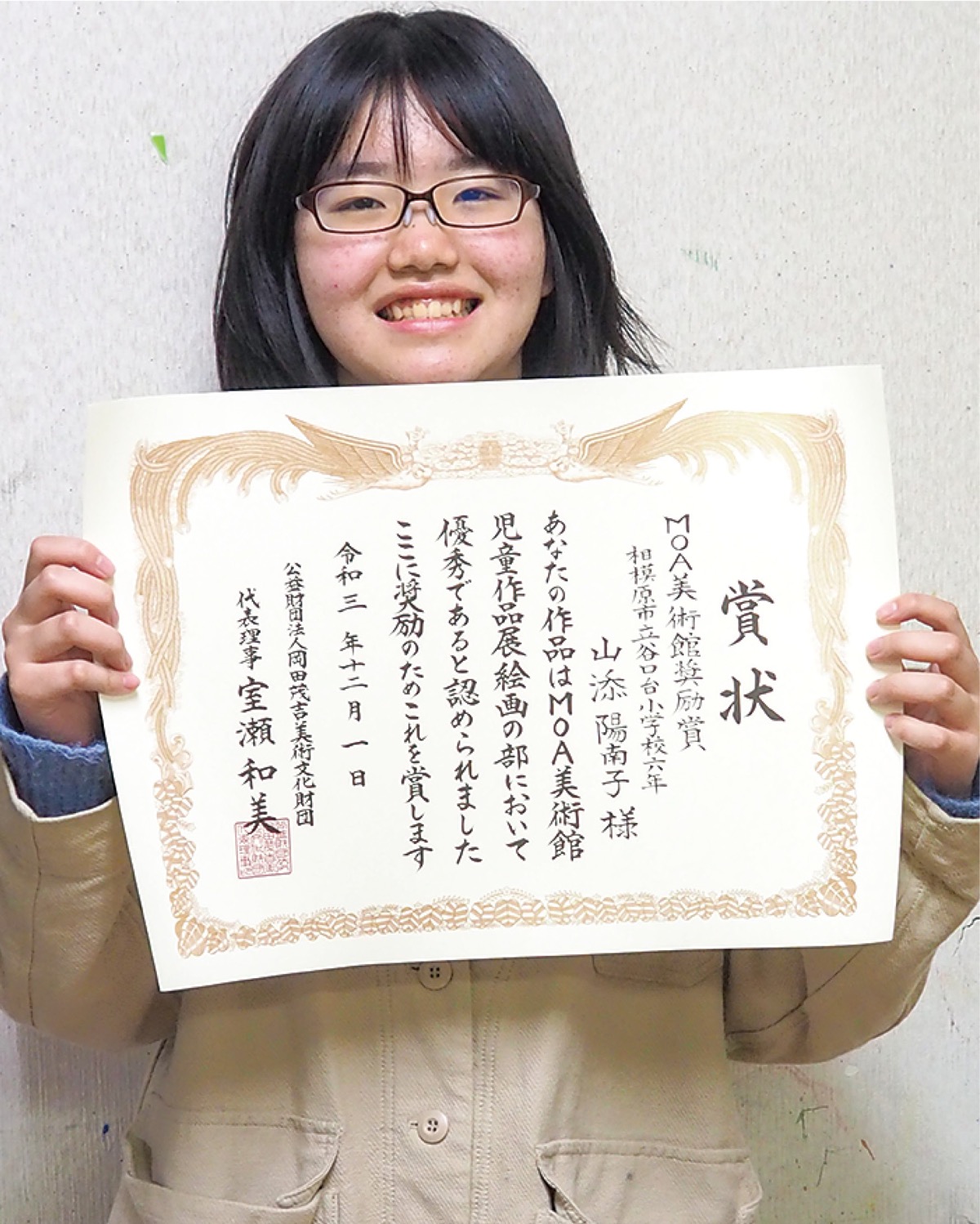 今回の作品展で最高賞となるMOA美術館奨励賞を受賞したのが、谷口台小学校6年の山添陽南子さんだ。