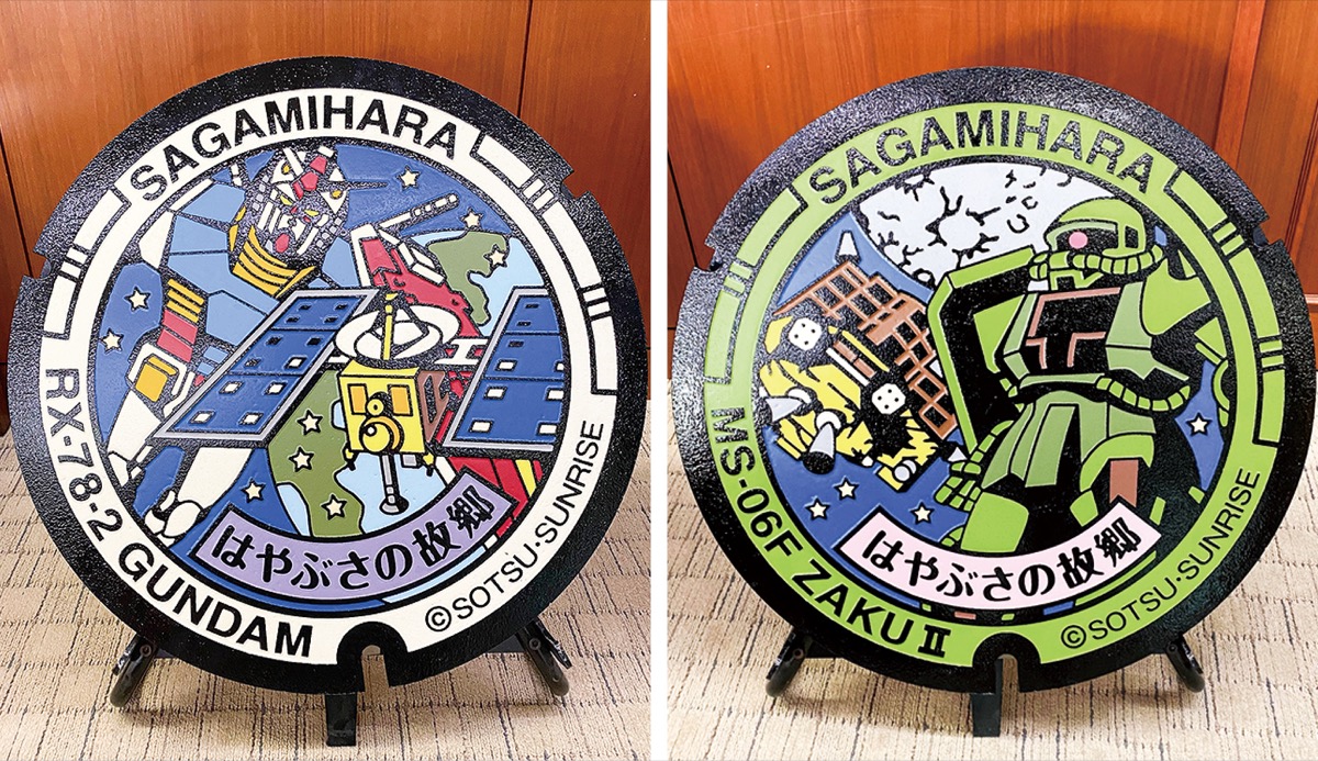 人気アニメ「機動戦士ガンダム」に登場するロボットをモチーフにしたマンホール蓋が3月11日、相模原市に寄贈された。2種類の蓋は淵野辺駅北口とJAXA宇宙科学研究所前にそれぞれ設置される。全国では小田原市に次いで2例目。市は多くの市民に、デザインを見て下水道事業への関心を高めてもらおうと、設置に合わせ市内で巡回展示を行っている。