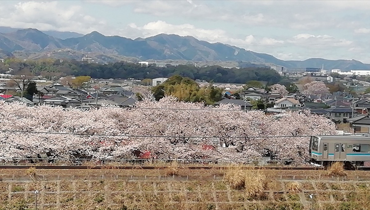 最優秀に選ばれた加藤さんの作品は、相模線が桜のトンネルを抜けていくイメージで撮影されたもの。地域包括支援センターに勤める加藤さんは、訪問支援に通っている高台の高齢者宅にかねてから「桜の時期になったら写真を撮りに寄らせてほしい」とお願いしていたという。