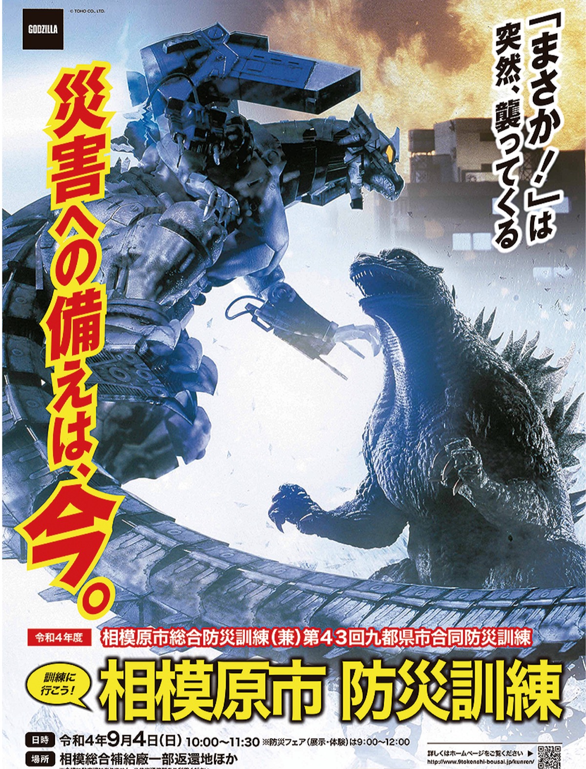 「毎年、防災の日の9月1日前後に行う、震度6強の地震を想定したもの。相模総合補給廠の一部返還地とスポーツ・レクリエーションパークを会場とする。自衛隊、在日米陸軍、警察、消防など約100の防災関係機関が集まり合計2000人規模のものとなる」