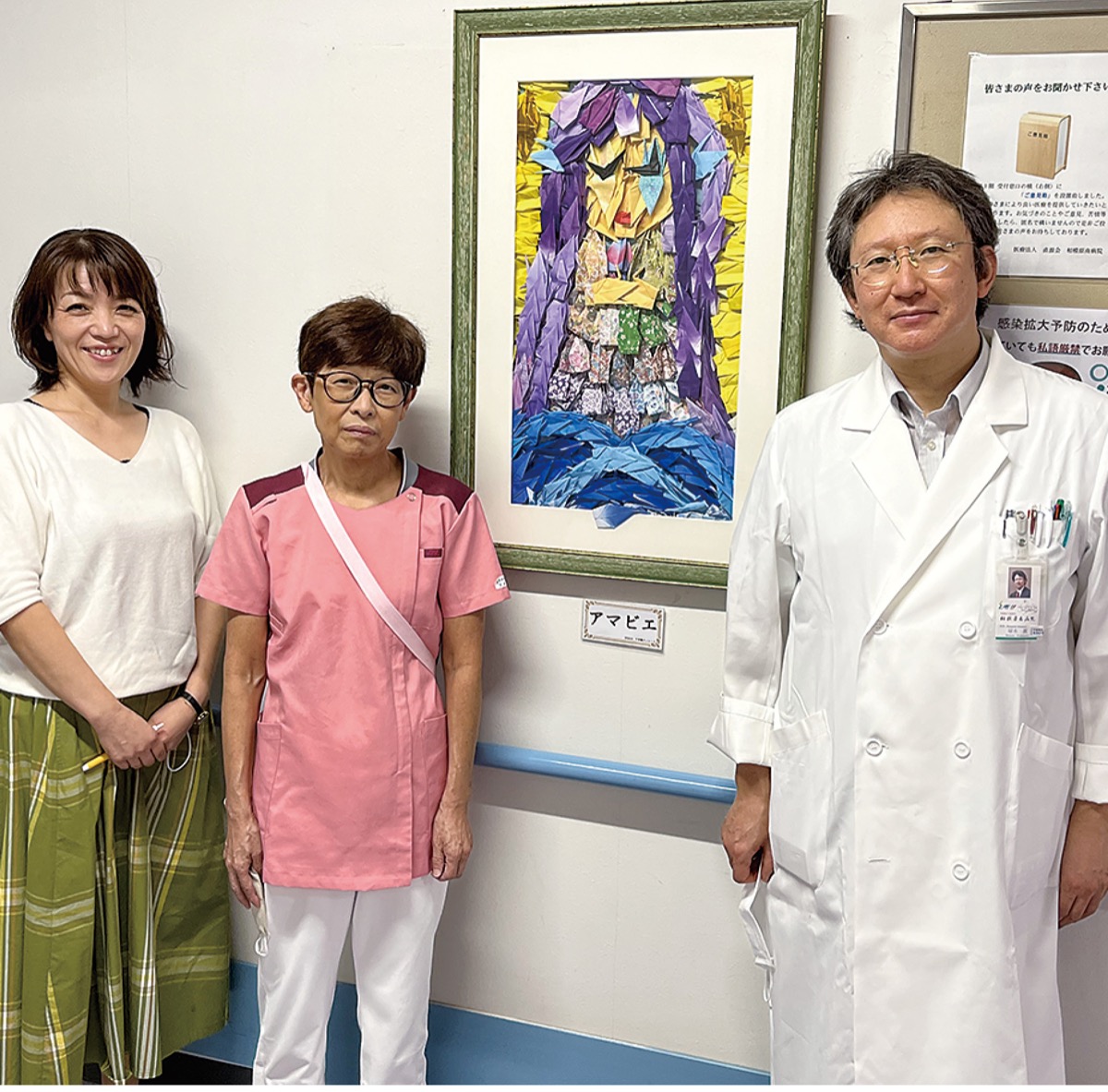 この夏、1000羽の鶴は額縁に入れて飾られた。また、同院スタッフの提案により残りの2003羽の鶴で作品を描き展示することになった。同院の敷地内にある「桜」「鯉」「みかん」を作り、長寿の象徴「鶴」や新型コロナウイルスの終息を願い「アマビエ」も制作された。