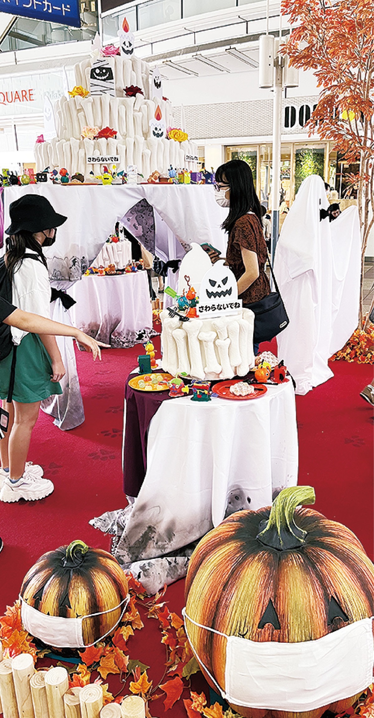 「相模大野ステーションスクエアハロウィン装飾2022」が10月31日(月)まで、相模大野駅コンコース前アトリウム広場(南北自由通路)に展示されている=写真。