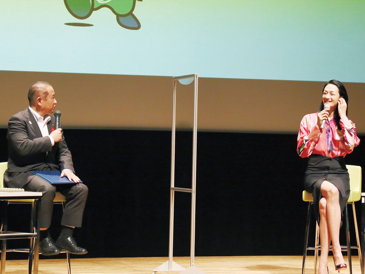 「何でもあるまち。(会場近くの)橋本駅が都会的になってきて。でも少し行くと自然がある」。聞き手として壇上に上がった本村賢太郎市長からの「相模原はどのようなまちか」という質問に、冨永さんはそう答えた。小学5年生の時から高校卒業まで橋本で過ごした冨永さん。「ホームセンターなども大きく、子育てしやすいまちだと思う」とも話した。