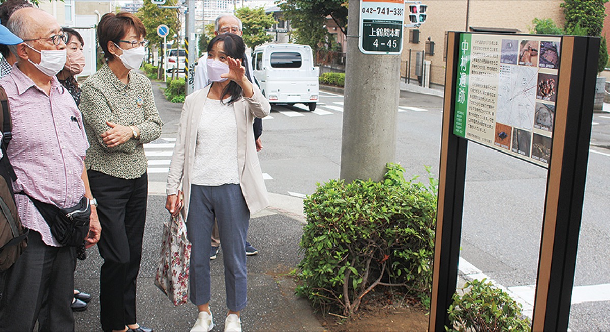 旧上鶴間村にあった遺跡や史跡を紹介するマップは公民館活動に参加している専門委員や運営協議会メンバー、郷土の歴史研究家など8人で実行委員会(島田茂実行委員長)を組織。現地視察や情報収集などを行いながら編集にあたった。マップには4つの散策コースが紹介され、「中村遺跡」はコースの1つに出てくる。ただ遺跡があったとされる場所にはマンションが建っており、遺跡を忍ばせるものはなく、マップ作成時から碑などの設置が望まれていた。