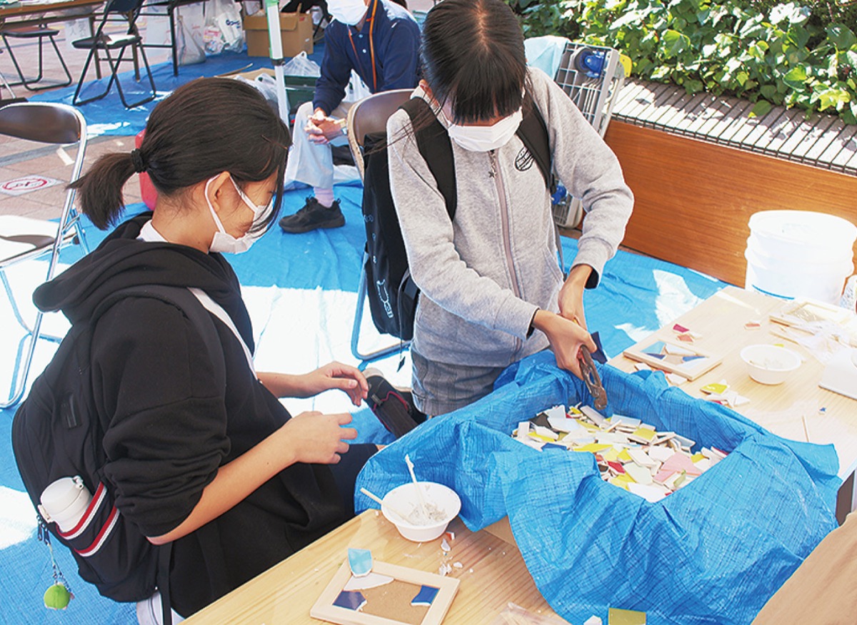 今年初めて会場となったJR橋本駅北口ペデストリアンデッキでは、コッパ(木っ端)トイ教室やタイルアートづくりなどを開催。子どもから大人まで時間を忘れて創作に夢中になっていた。近所に住む80代の女性はタイルアートに挑戦。「偶然寄って初めて作ったけれど『センスが良い』と褒められました。サイコーです」と笑顔を振りまいた。