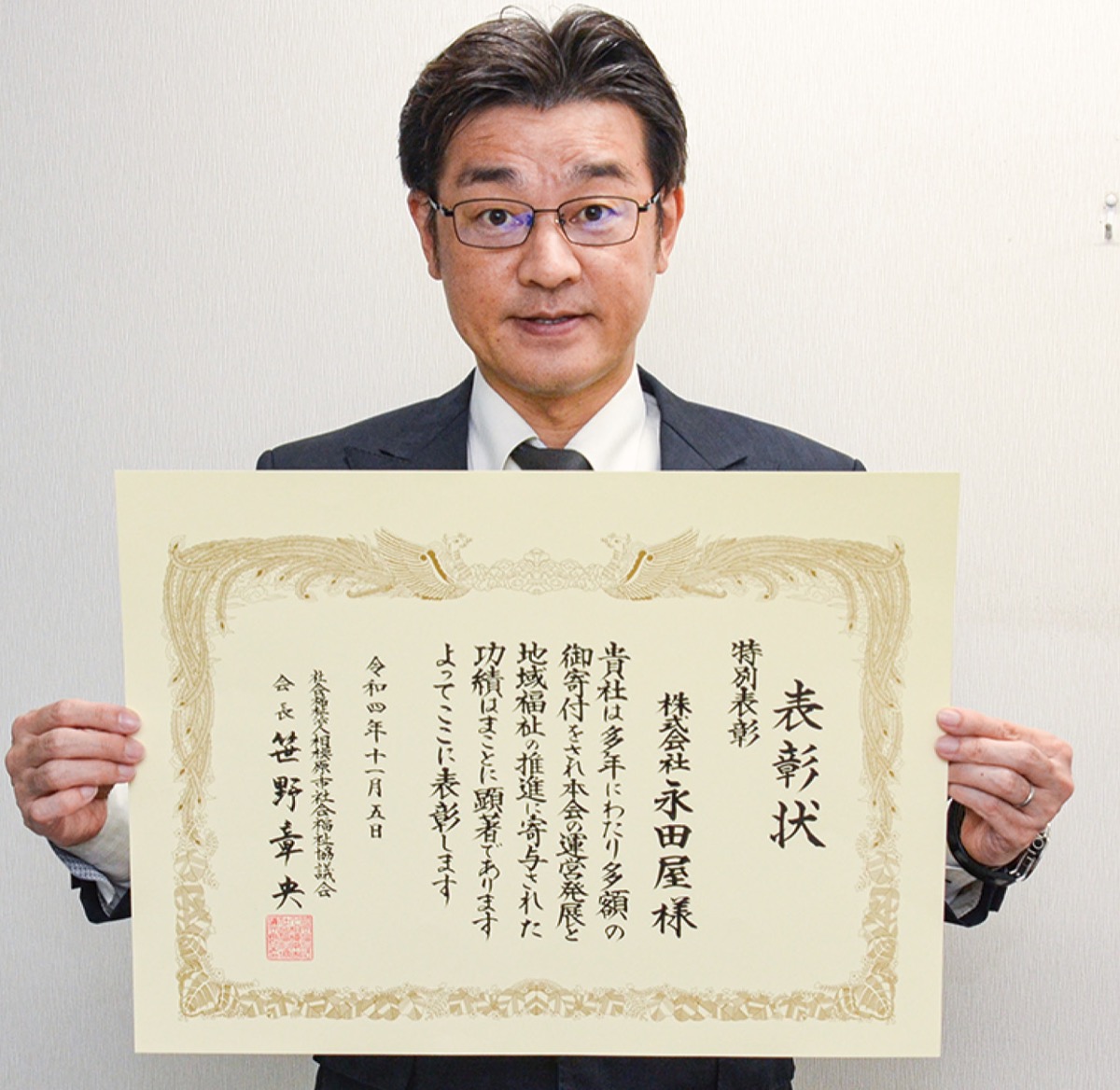 創業109年の地元葬儀社・株式会社永田屋(田中大輔代表取締役)は、地域福祉の推進に寄与したとして、このほど相模原市社会福祉協議会から特別表彰を受けた。