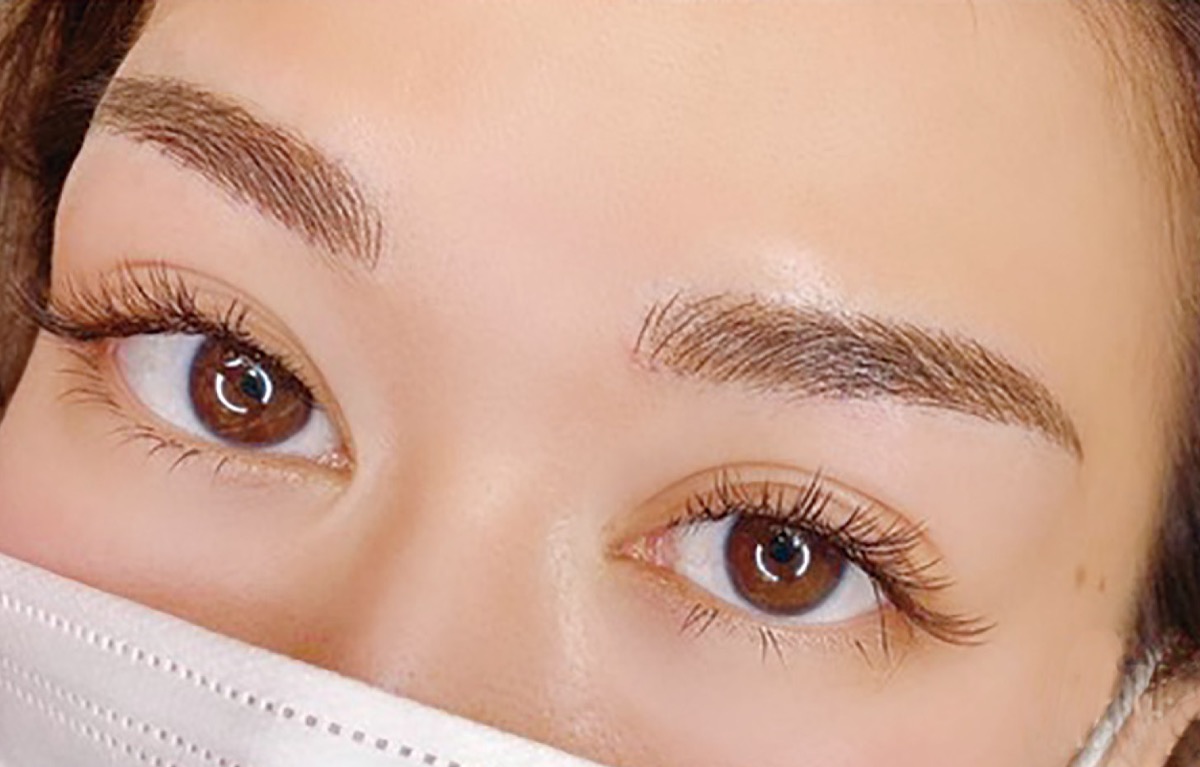 眉毛は黄金比を基に、1人1人の顔の骨格に合わせてデザインし、オーダーメイドで仕上げてくれる。また、リップアートメイクも人気。唇に色合いを足し、まるで薄付きのリップをしているような仕上がりになる。マスクに口紅がつくことがなくなり、食事でもとれないのが特徴だ。
