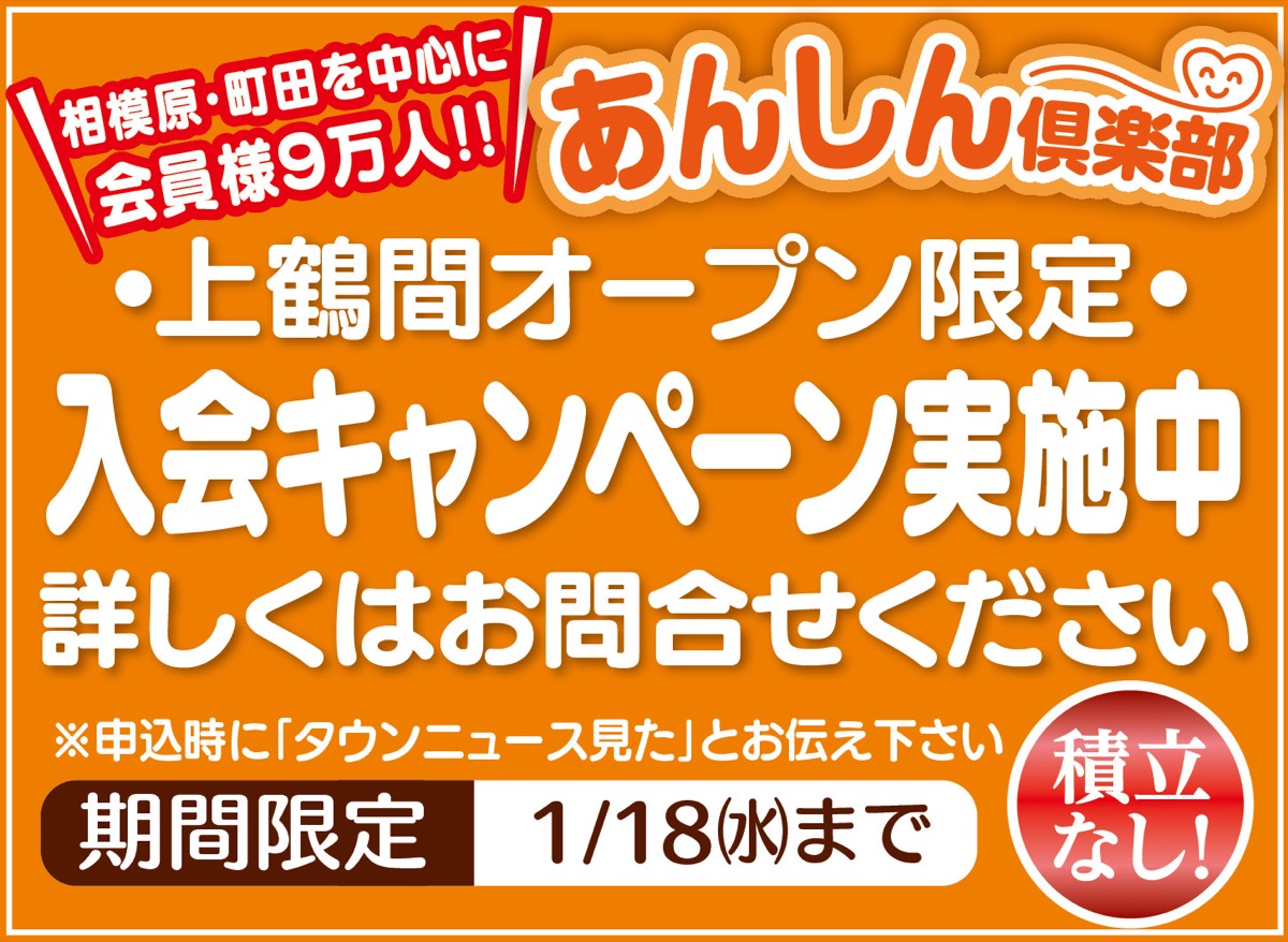 9万人を超える会員制度「あんしん倶楽部」は入会金1万円のみ、年会費・積立金は一切不要で家族全員が特典を受けられる。さまざまな割引や特典を受けることができる。オープン記念として、1月18日(水)までの期間限定で入会キャンペーンを実施中。問い合わせはお気軽に。