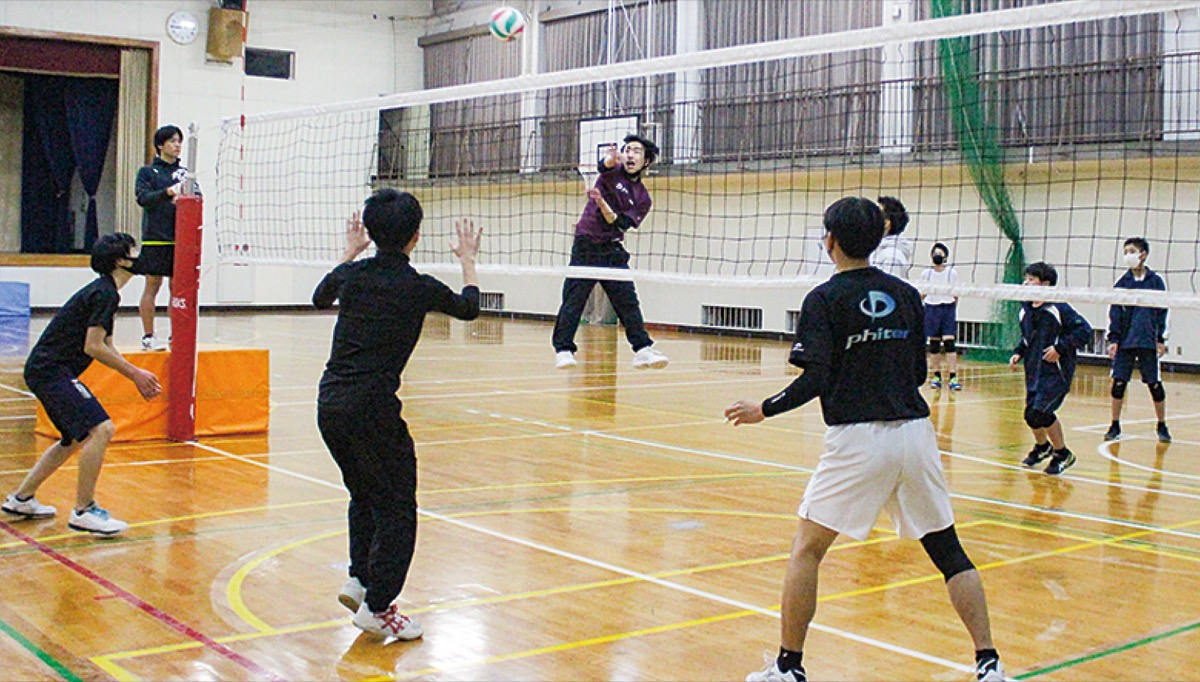 きっかけは、石倉校長が市内の中学校から「コロナ禍で部活動が制限されている生徒たちのために学校を利用させてもらえないか」との打診があったこと。石倉校長は城山高時代の教え子で、昨年4月に同校に赴任したバレーボール部顧問の井上大輝(31)さんに相談。市内の子どもたちのためにバレーボールを通して何か貢献できないかと考えていた井上さんは快諾。昨年9月から隔週月曜日に夜7時から約2時間、中学生たちとバレーボールの練習を実施している。