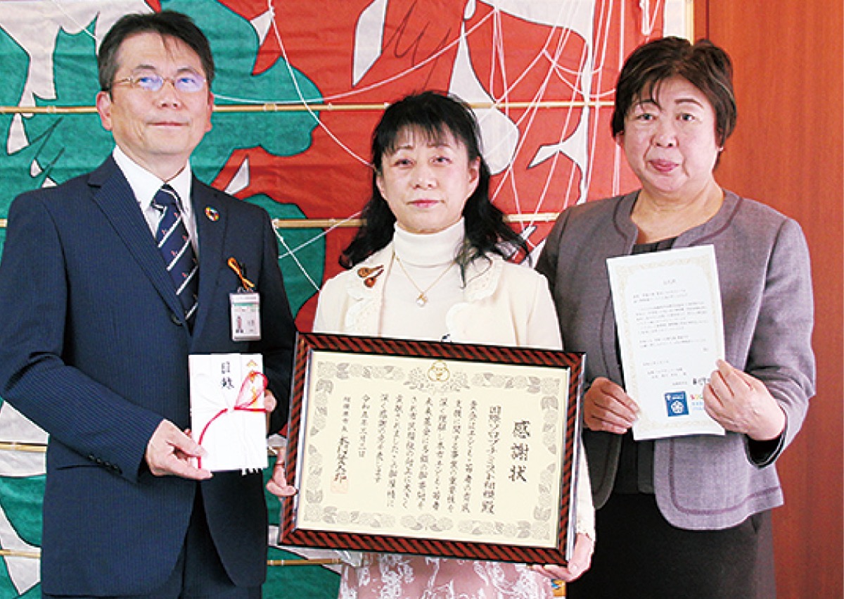 同団体は2018年から、5件総額50万円を同基金に寄付している。同日、黒川会長と永保惠子副会長が市役所を訪れ、本村市長から感謝状を受けた。