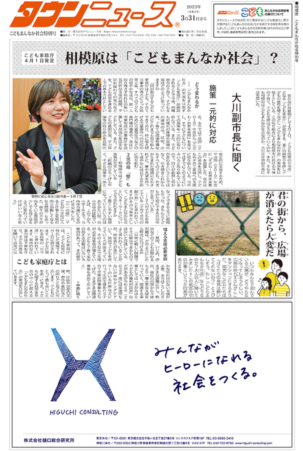 タウンニュースは4月1日に発足したこども家庭庁や、同庁が掲げる「こどもまんなか社会」について紹介する「こどもまんなか社会特別号」を発行しました=画像。市内の公立小学校、中学校、義務教育学校に配布しています。