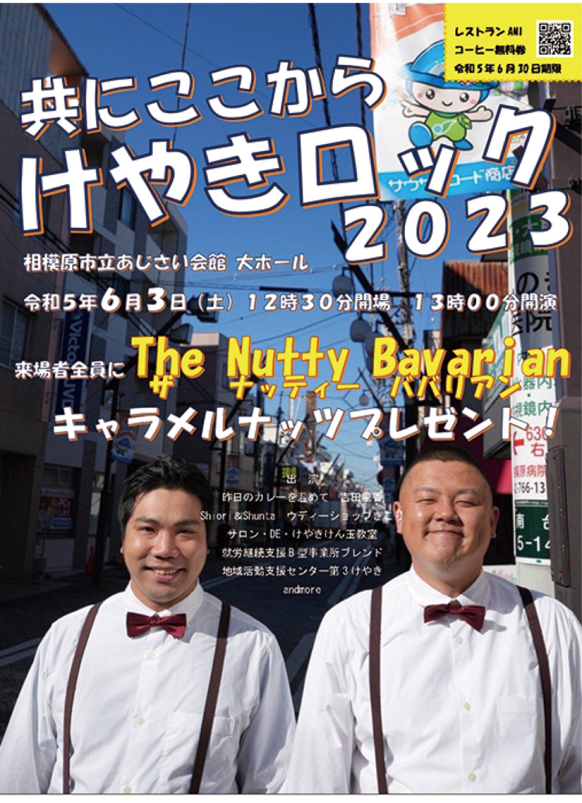 「共にここから けやきロック2023」が6月3日(土)、相模原市立あじさい会館大ホールで開催される=画像。開場は午後0時30分、開演は1時からで、3時30分に終了予定。