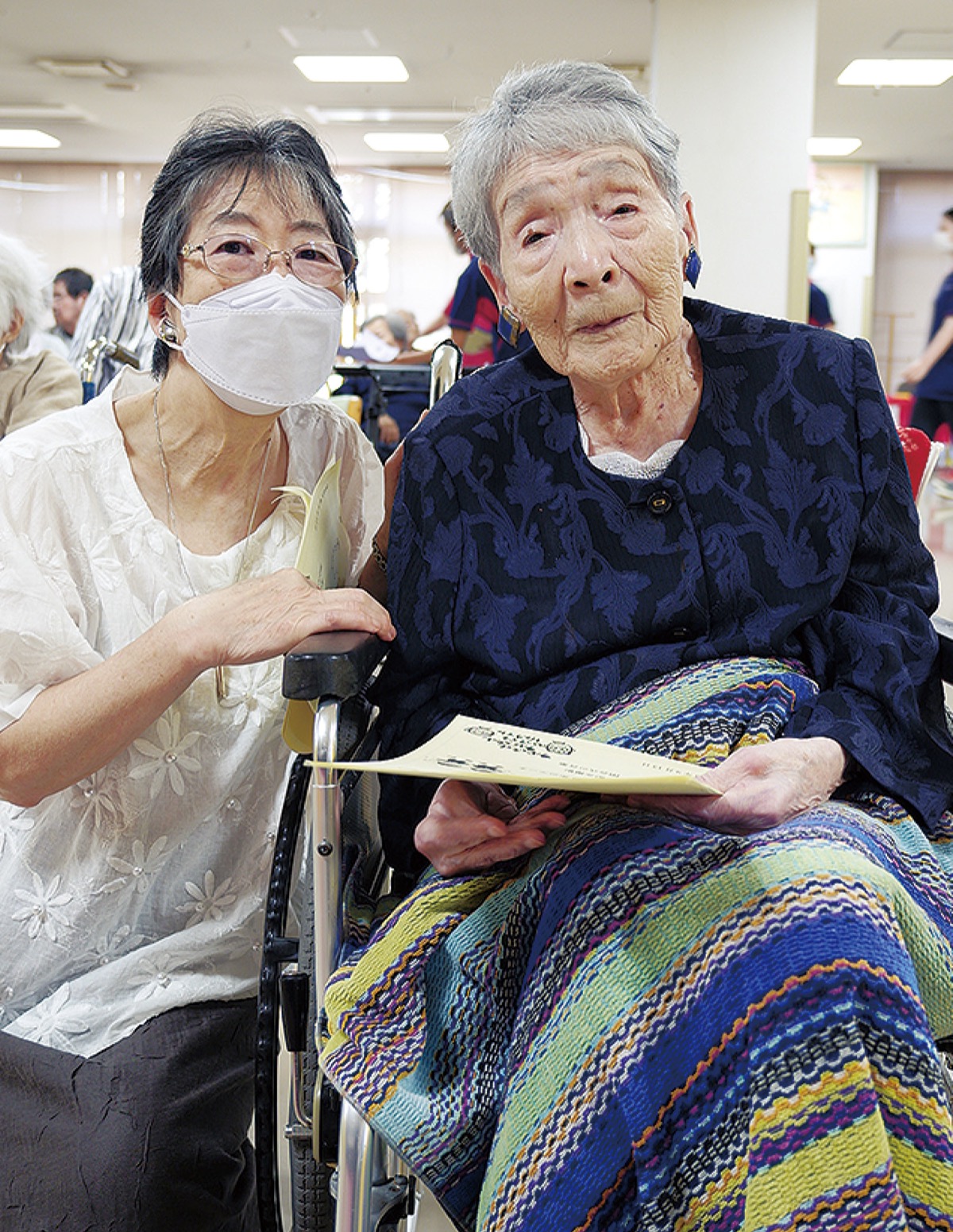 本村市長は、津久井産材の木製盾「椿寿」など、記念品を贈呈し長寿を祝った。また、同日、同施設が祝いの会を開催。高橋さんは園児からの歌の贈りものなどに笑顔で喜んでいた。