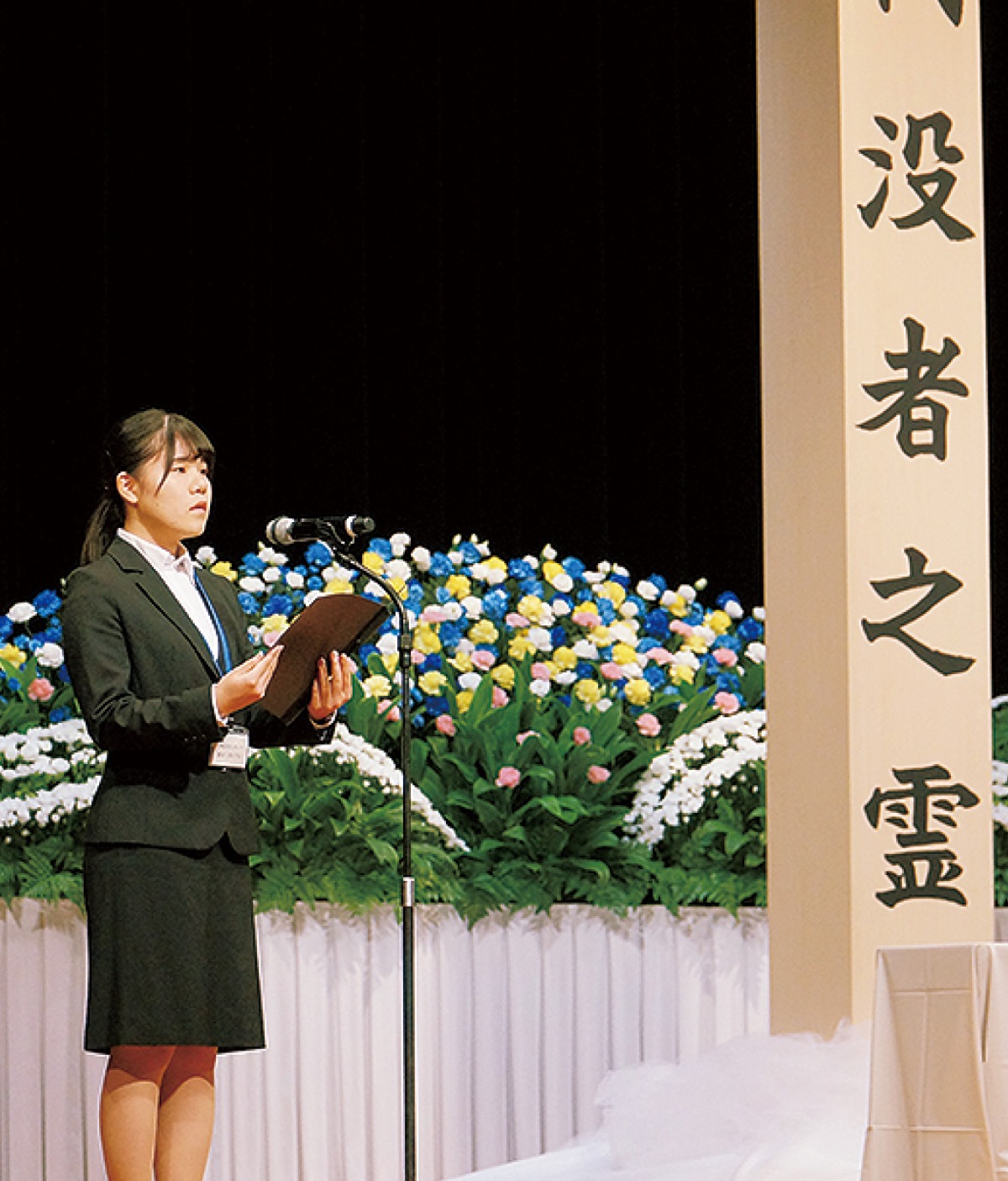 同遺族会の会員は現在、約900人で、近年は毎年約50人のペースで減少しているという。こうした事態を踏まえて、同遺族会が桜美林大学と相模女子大学に協力を呼びかけたところ、7人の学生が参加した。式典では学生が進行役を務めるなど運営にかかわった。