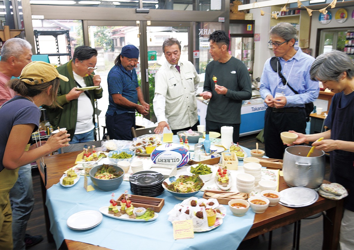 当日参加したのは、有機栽培を行う農家や新規就農者、環境保護団体、飲食店業者など、15人ほど。自己紹介をした後、津久井在来大豆や参加農家の有機野菜を使った料理が振る舞われた。有機栽培を始めて3年目という笹農園(緑区)の笹野光広さんは「有機農家さんは人数が少なく、こうした交流の場はあまりない。大豆の加工品の種類の多さ、青パパイヤが栽培されていることなど、新たな情報を知ることができた」と話す。