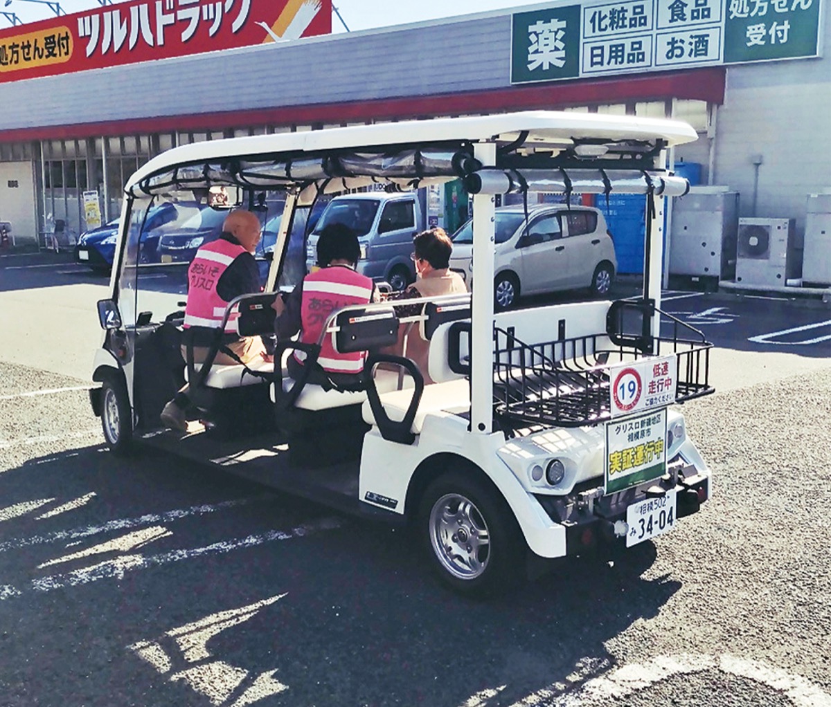 車両はゴルフカートと同等で運転手と買い物支援をする助手1人を含む7人乗り。運転手、助手はボランティアで担い、乗車賃は無料となる。