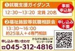 「他業界からの転職を検討している」「福祉の仕事に興味がある」など、誰でも気軽に参加できる。未経験者・無資格者・学生も歓迎。仕事のやりがいについてのガイダンスや、約25法人が出展する相談会では、リアルな職場環境や労働条件等を聞くことができる。
