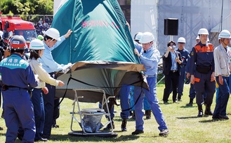 ただ、能登半島地震では人口減少と高齢化が災害対応の難しさを浮き彫りにした。同課では「本市では仮設トイレ組立式を備蓄しているが、避難所運営者(地域市民も含む)が高齢化してきており、備蓄倉庫から移動させることに多大な労力がかかることや組み立て時に時間を要してしまうことなどの課題がある」という。