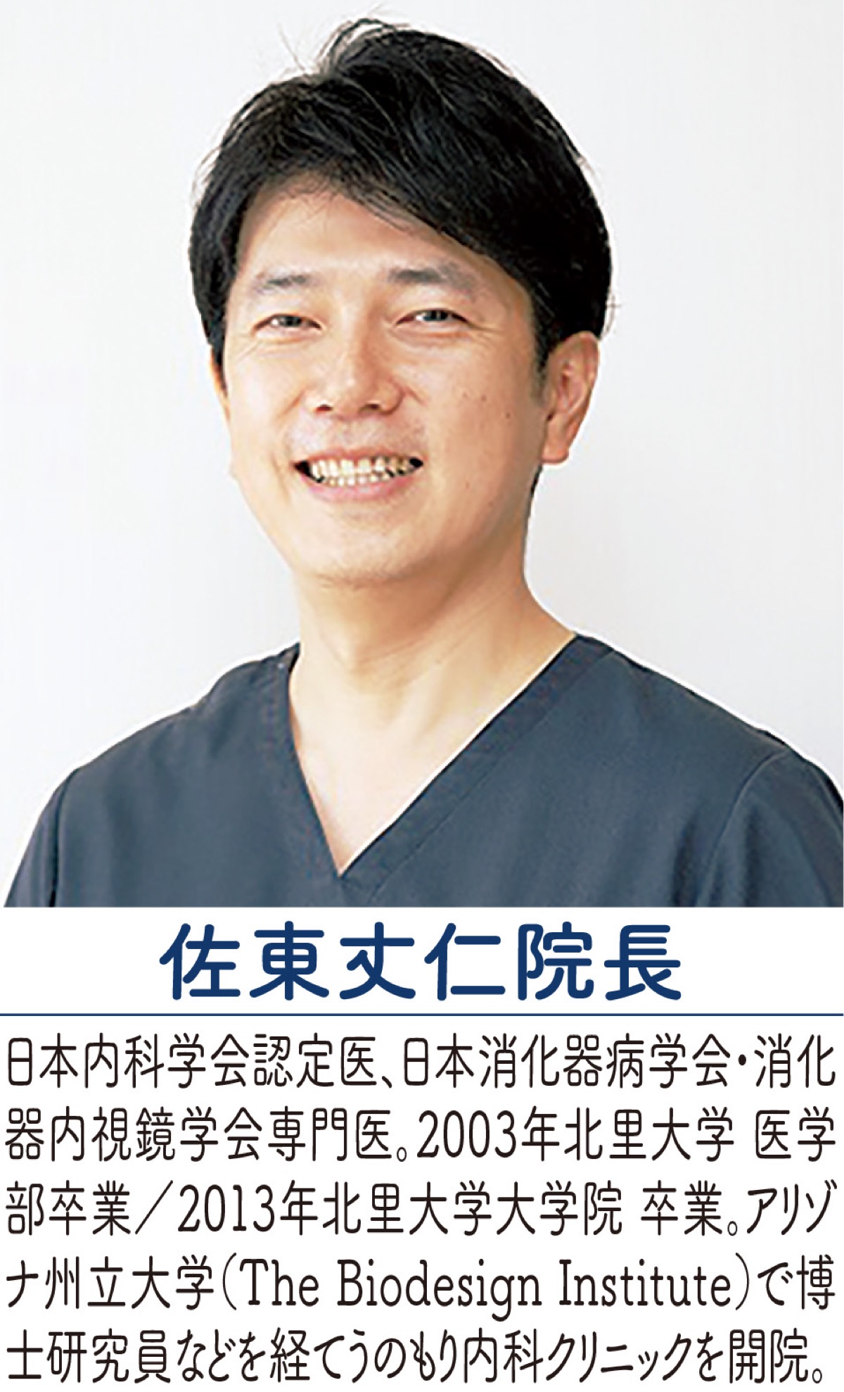 同院の佐東丈仁院長は消化器病専門医、消化器内視鏡専門医の資格を持ち、大腸がんや胃がんの予防・治療にも努めている。痛みの少ない内視鏡検査のほか、検査中に発見した大腸ポリープを切除することも可能。検査の負担を極力減らすよう心掛けている。またAI技術を使った内視鏡診断支援や胸部レントゲンなどを備え病気の見落としのリスクを軽減する。
