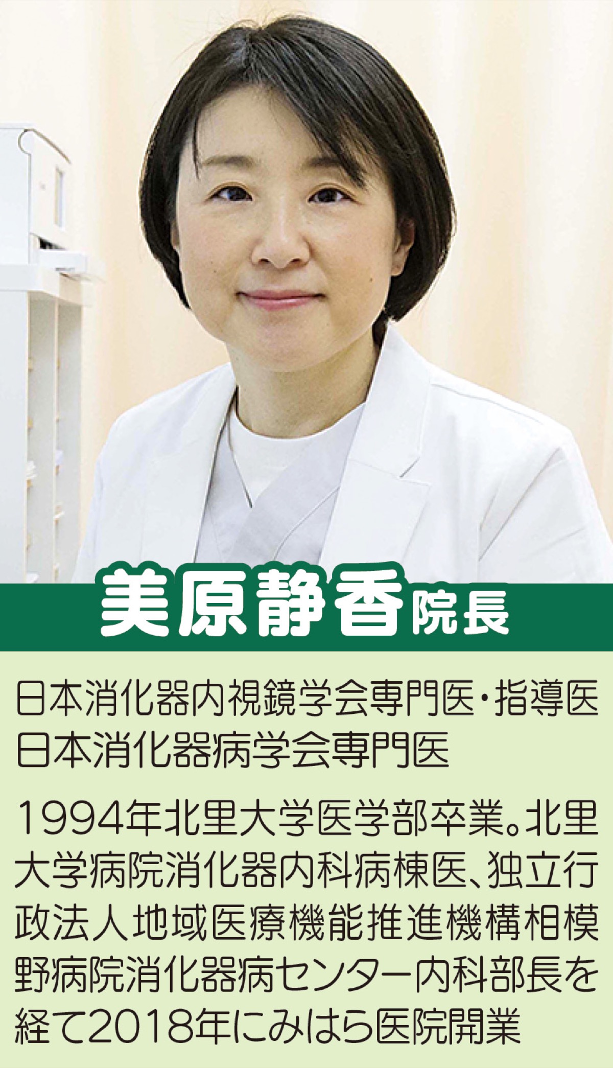 南区西大沼で開業7年目を迎えるみはら医院では、胃、大腸内視鏡検査を実施している。同院の美原静香院長は消化器内視鏡専門医・指導医の資格を所持。各種検査や予防接種にも対応し地域のかかりつけ医として診療にあたる。