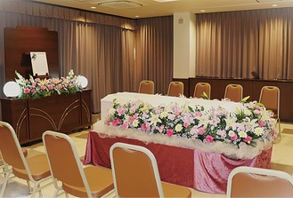「お別れ式65」(会員価格71万5000円)は安心の定額プラン。家族と親族が故人と最後の夜を過ごせる通夜から、告別式では黙祷や経歴紹介、代表者の弔辞や献花などを行う。御棺を縦に安置し、参列者で囲む形など配置もさまざまだ。「それぞれの想いに寄り添う形をご提案いたします。お気軽にご相談ください」と同社。