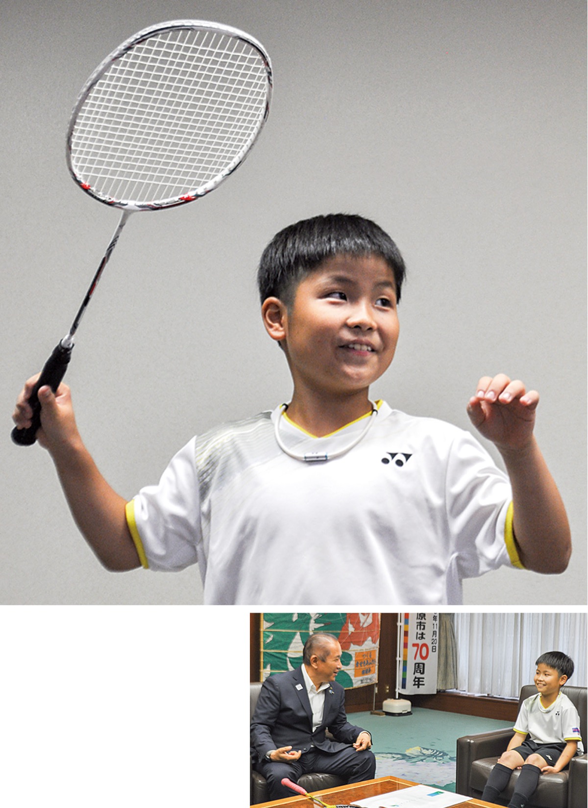 8月に岐阜県内で開催される「第25回ダイハツ全国小学生ABCバドミントン大会」に出場する「若草ジュニアバドミントンクラブ」(安藤隆監督)の鈴木旺輔さんが7月18日、相模原市役所を訪れ、本村賢太郎市長に意気込みを語った。